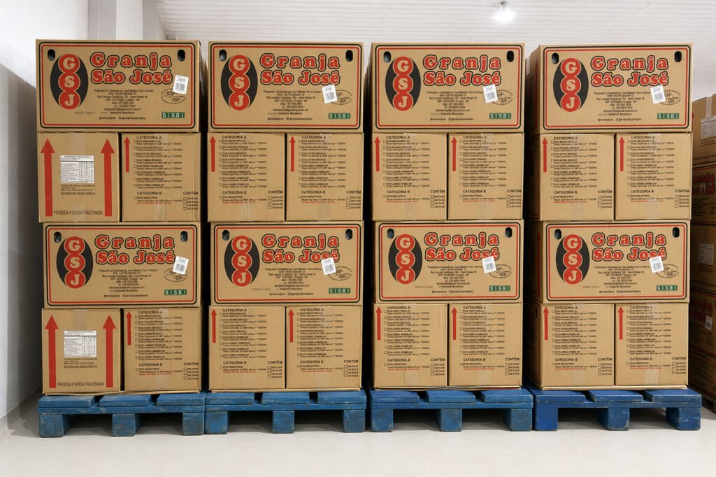 A venda no atacado envolve um volume mais expressivo de caixas de ovos, geralmente dentro de uma programação semanal de retirada dos pedidos.